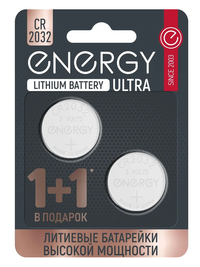 Батарейка литиевые ENERGY Ultra CR2032/2B 2шт в упаковке 104409