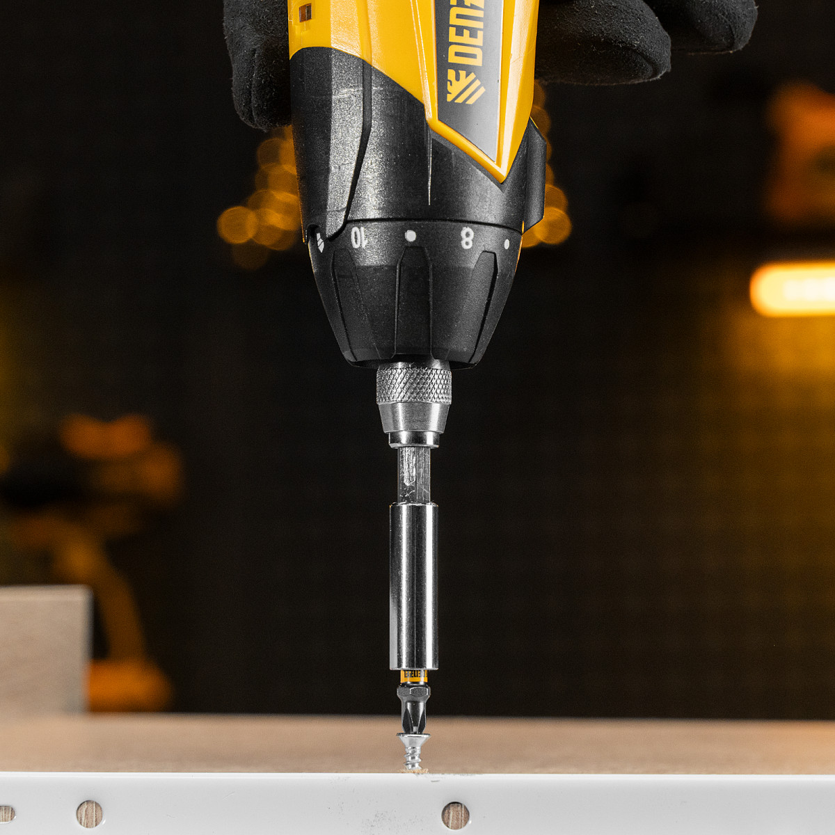 • Защита от подделок — цветное кольцо с логотипом ТМ Denzel на каждой бите подтверждает оригинальность товара.