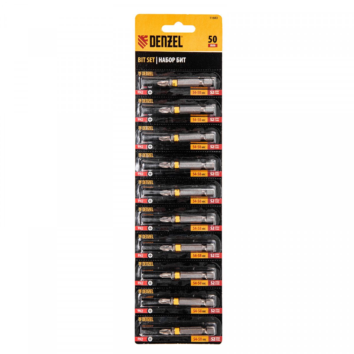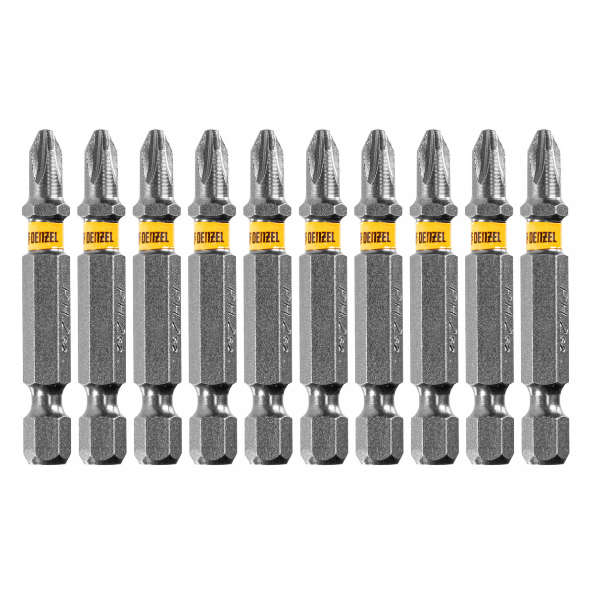 Бита PH2х50, сталь легированная S2, 10 шт., Е 6,3, шестигранный профиль, отрывная упаковка Denzel