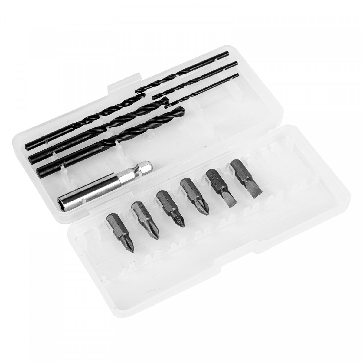 Дрель-шуруповерт аккумуляторная - 1 штБатарея аккумуляторная - 2 штУстройство зарядное - 1 штСверло спиральное по металлу - 6 штБита SL - 2 штБита PH - 2 штБита PZ - 2 штАдаптер магнитный для бит - 1 штКейс для хранения - 1 штРуководство по эксплуатации с гарантийным талоном - 1 шт
