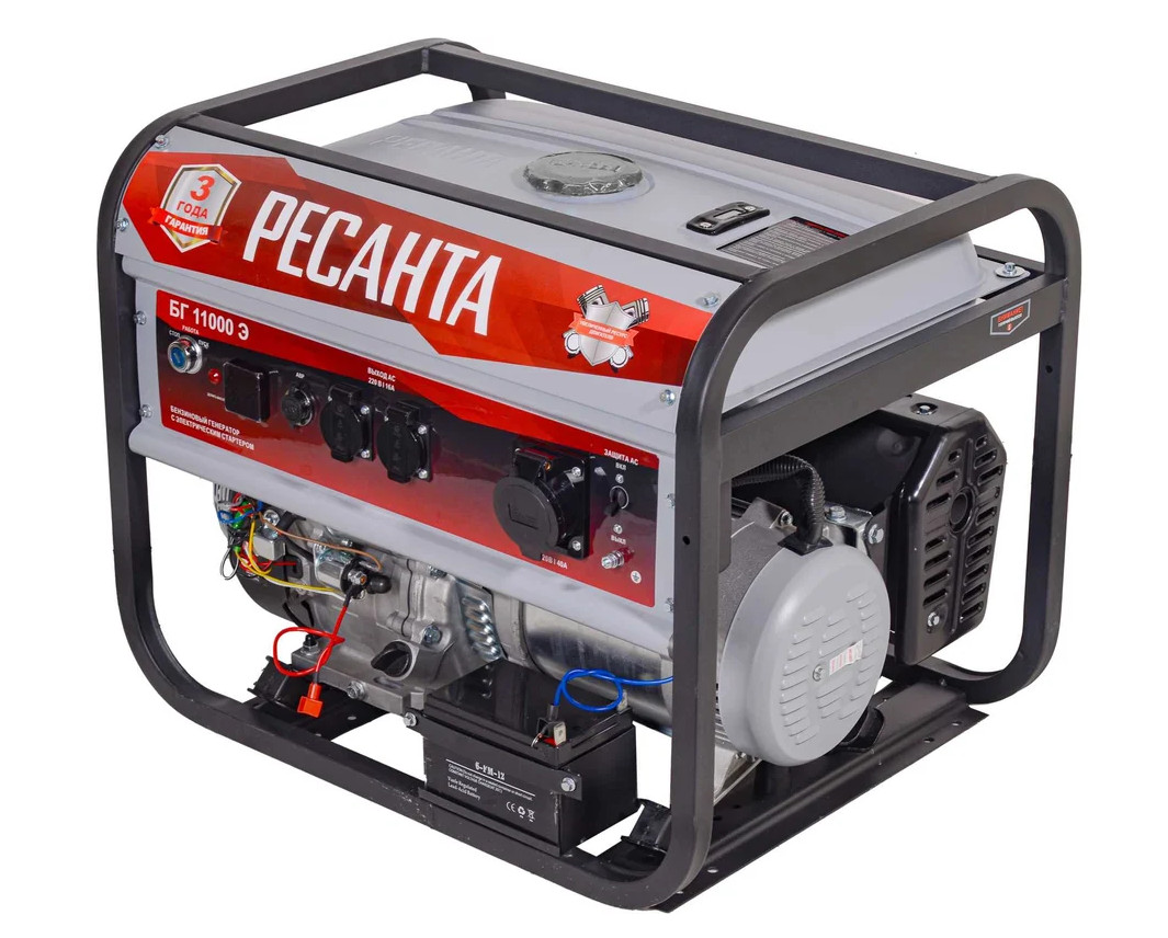 Бензиновый генератор Ресанта БГ 11000 Э – мощное и надежное устройство, способное обеспечить питанием в отсутствие электроснабжения строительную технику и частные домовладения. Повышенный ресурс работы двигателя и действующая система защиты от различных негативных факторов позволяет получить уверенность в длительном сроке эксплуатации.
