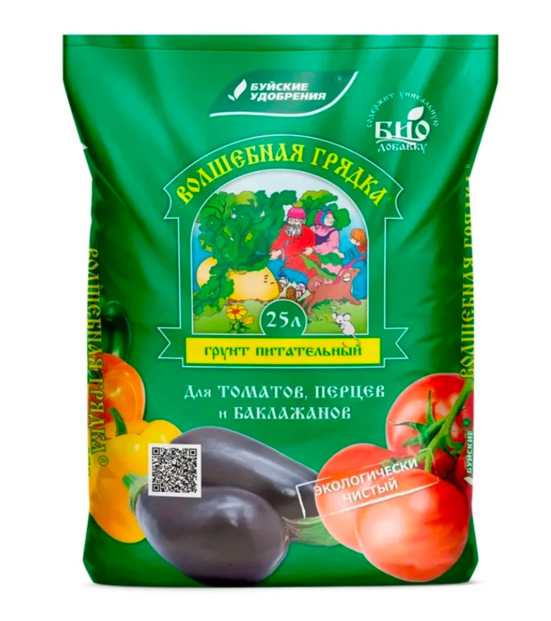 Грунт для выращивания томатов, перцев, баклажанов и других овощных культур. Приготовлен на основе нейтрализованного верхового торфа с добавлением в сбалансированном соотношении необходимых макро- и микроэлементов.