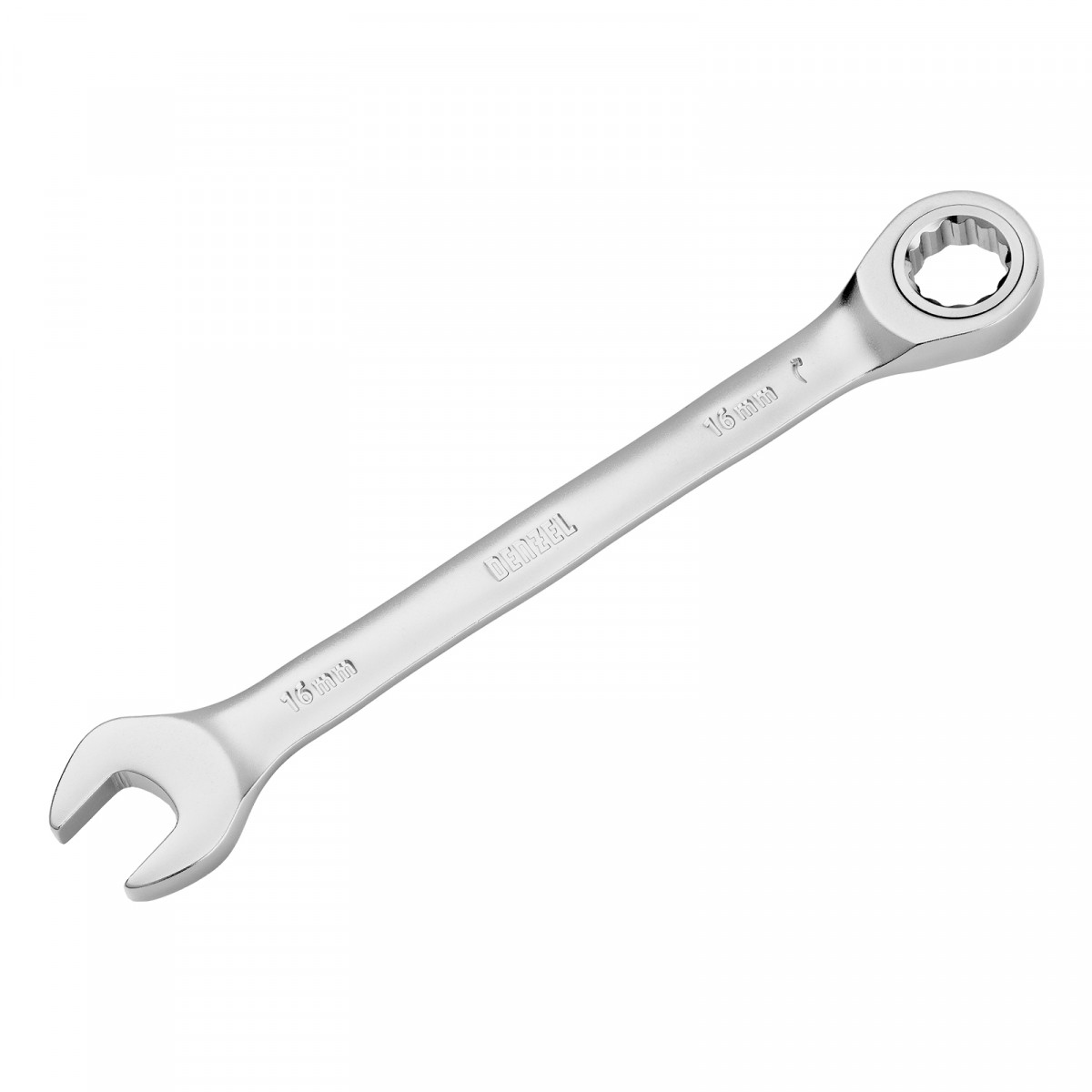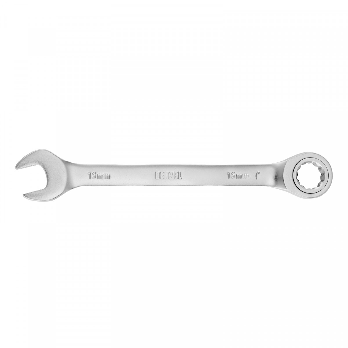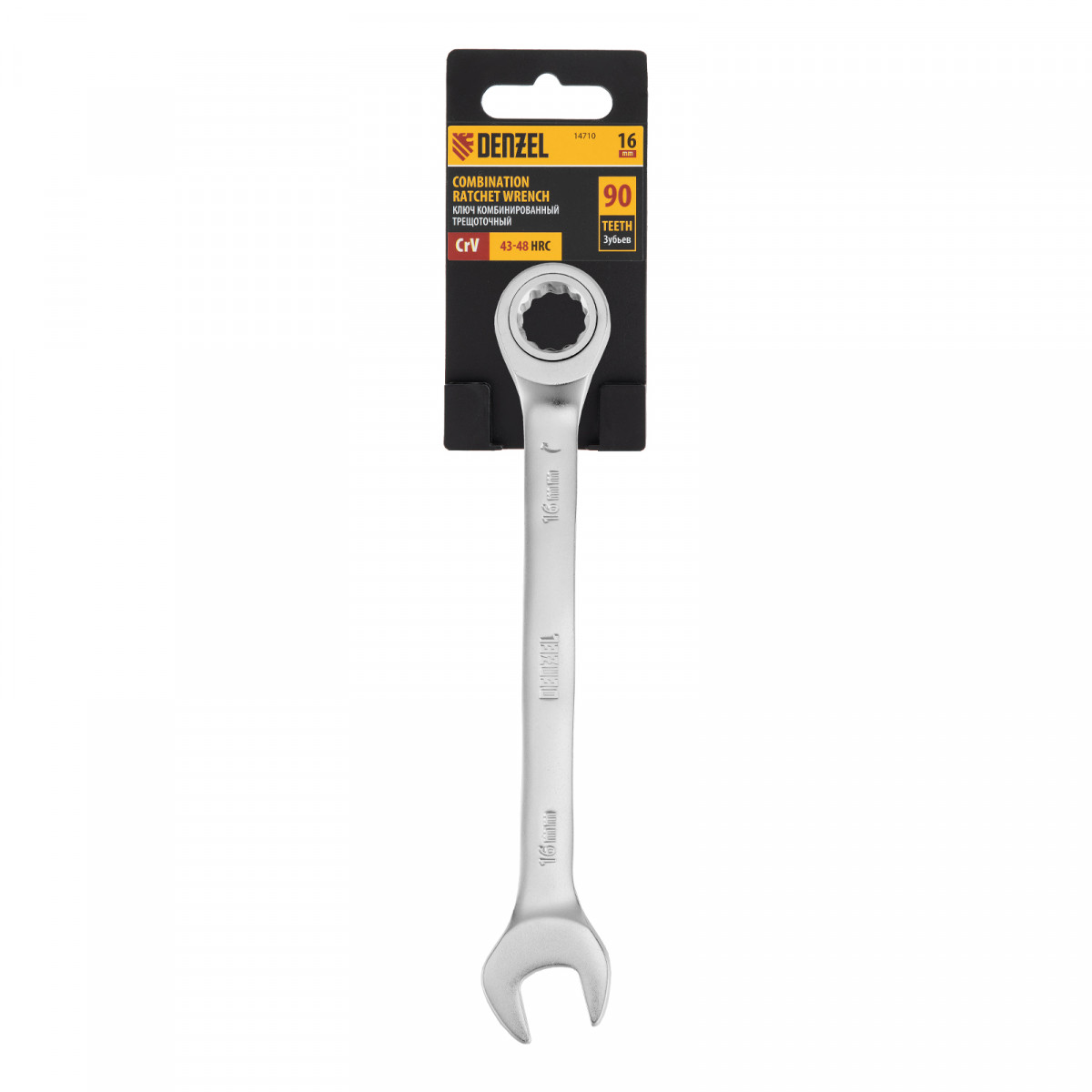 Ключ комбинированный трещоточный, 16 мм, CrV, матовый хром Denzel