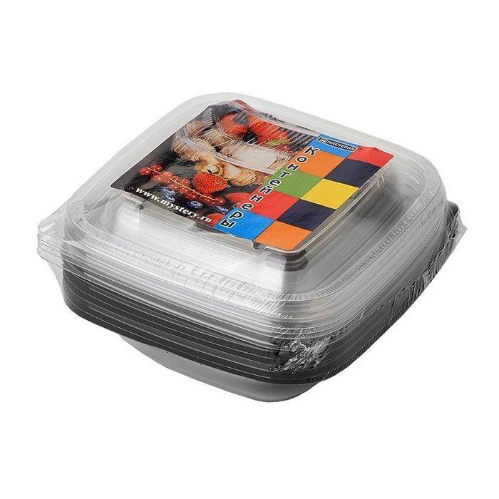 Контейнер с крышкой одноразовый квадратный 126х126х50 мм 500 мл 5 шт черный ПЭТ