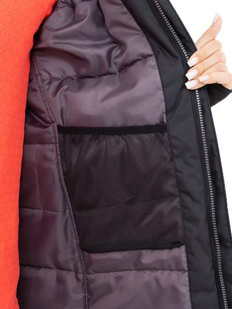 Функциональные особенности: Температурный режим – до -25 ˚С Конструктивные особенности: Покрой, посадка – изделие плуприлегающего силуэта, умеренного объема Длина изделия – до линии коленей Герметизация – частичная Водонепроницаемые молнии - да Капюшон – труба Утяжка капюшона - да Регулировка капюшона по высоте - да Воротник – стойка Ветрозащитная планка - да Застежка – на молнии под пластроном Регулируемые манжеты - да Рельефные швы – на полочке, на спинке Количество карманов - 5 Карман под планкой - да Светоотражающие элементы - да Ткань: курточная мембранная (100% ПЭ), 10000/10000, плотность 185 г/мкв. Утеплитель: тинсулейн термо, плотность 250 г/мкв. Подкладка: ткань подкладочная (100% ПЭ), трикотажное полотно (100% ПЭ). Опушка: искусственный мех.
