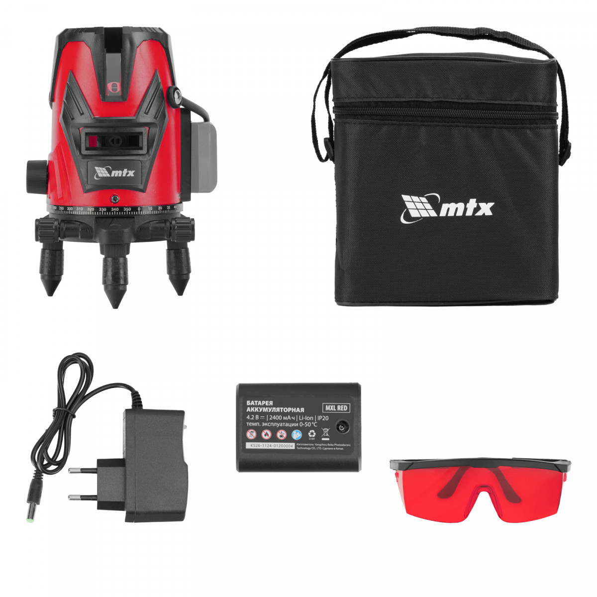 Лазерный уровень MXL RED, 30 м, красный луч, акк. Li 2400 mAh, сумка, резьба 5/8" MTX