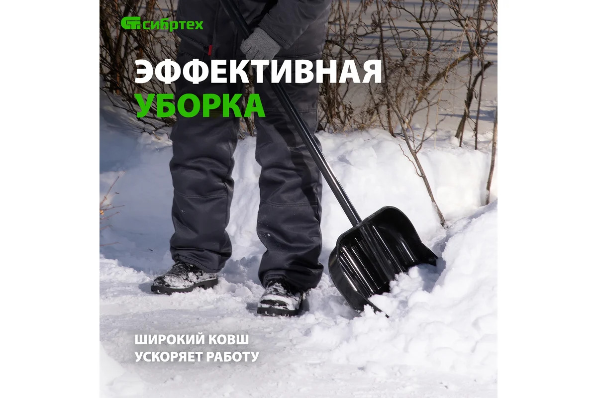 Лопата для уборки снега поликарбонат 460х400х1430 мм стальной черенок СИБРТЕХ