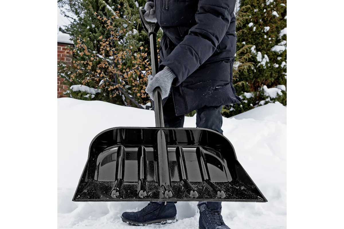 Ударопрочный поликарбонат обеспечивает долговечность и надежность лопаты при работе с снегом.