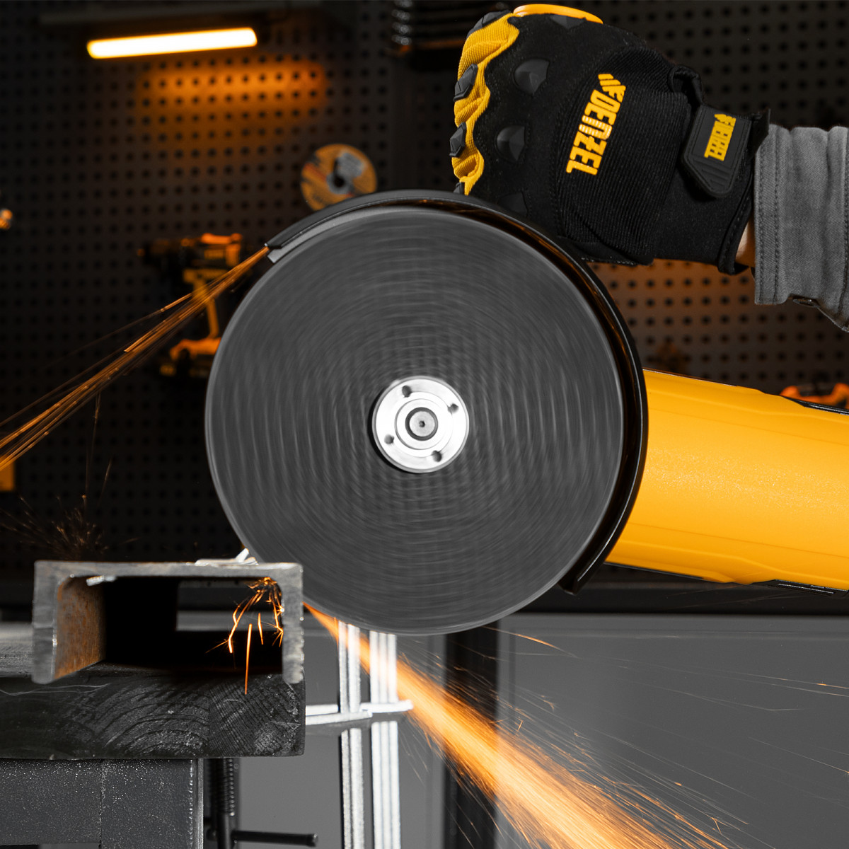 • Безопасность — кнопка блокировки предотвращает случайный запуск УШМ.