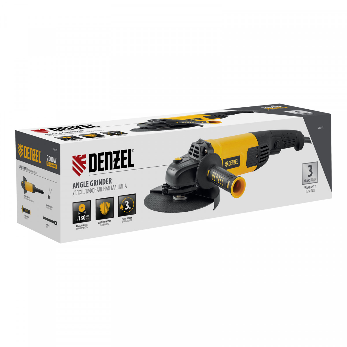 Машина шлифовальная угловая AG180-2000, 2000 Вт, 180 мм, 8500 об/мин Denzel