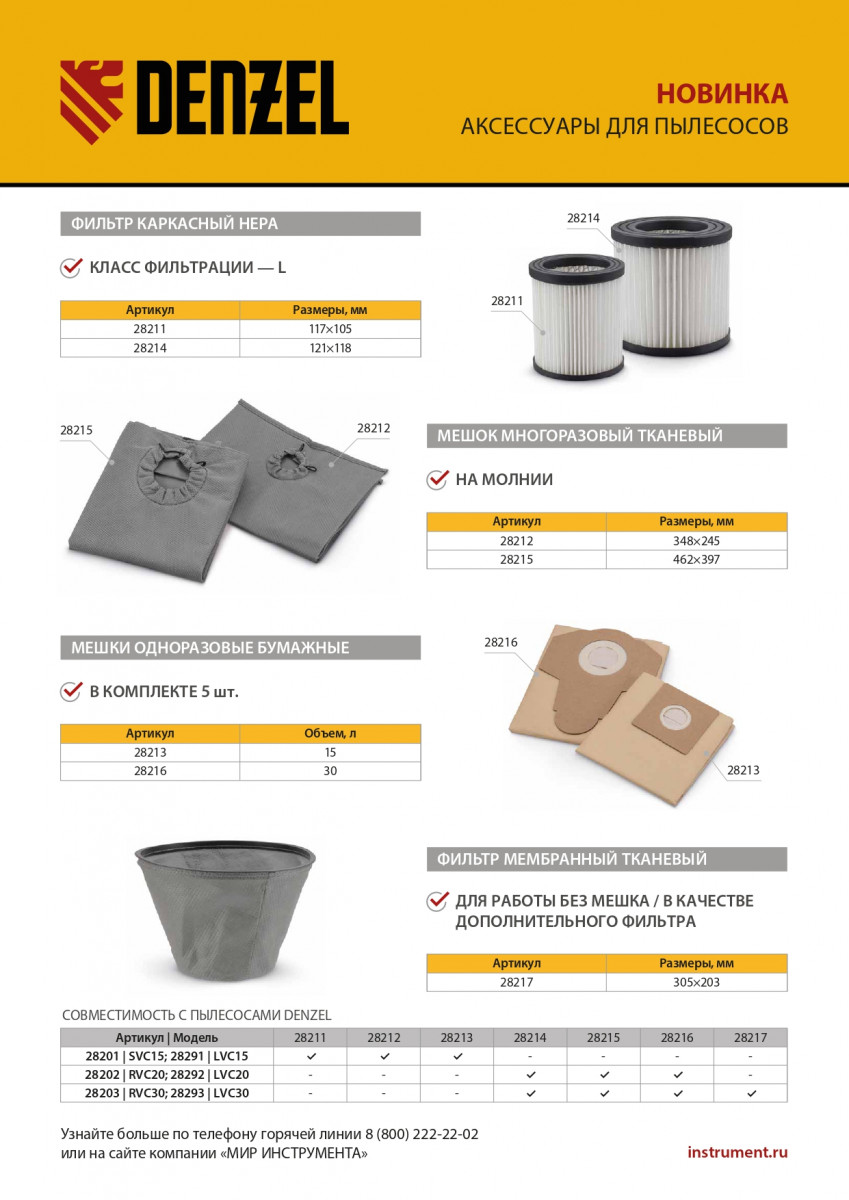 Многоразовый тканевый мешок Denzel 28212 — сменный аксессуар для строительных пылесосов SVC15 (28201), LVC15 (28291). Устанавливается в бак пылесоса и служит для сбора мусора во время сухой уборки.