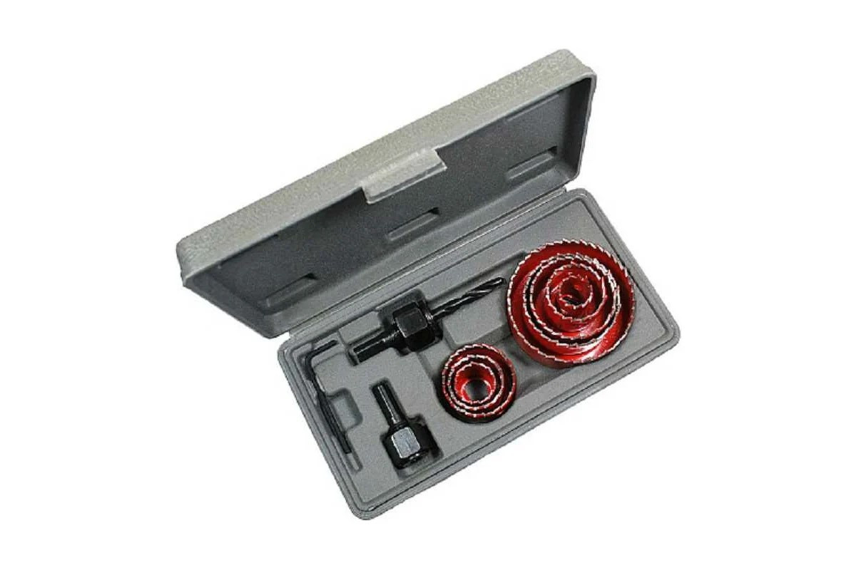 Набор коронок по дереву 11 предметов, 19, 22, 29, 32, 38, 44, 51, 67 мм применяется с электродрелью в качестве насадки. Облегчает работу при монтаже электровыключателей, розеток, распределительных коробок, осветительной фурнитуры, при прокладке сантехнических и канализационных трубопроводов.Обеспечивает быстрое сверление отверстий разных диаметров в древесине, гипсокартоне, фанере, ДСП и пластмассе.Пилы с разведёнными зубьями. Все принадлежности набора выполнены из углеродистой стали.Глубина сверления - 22 мм.