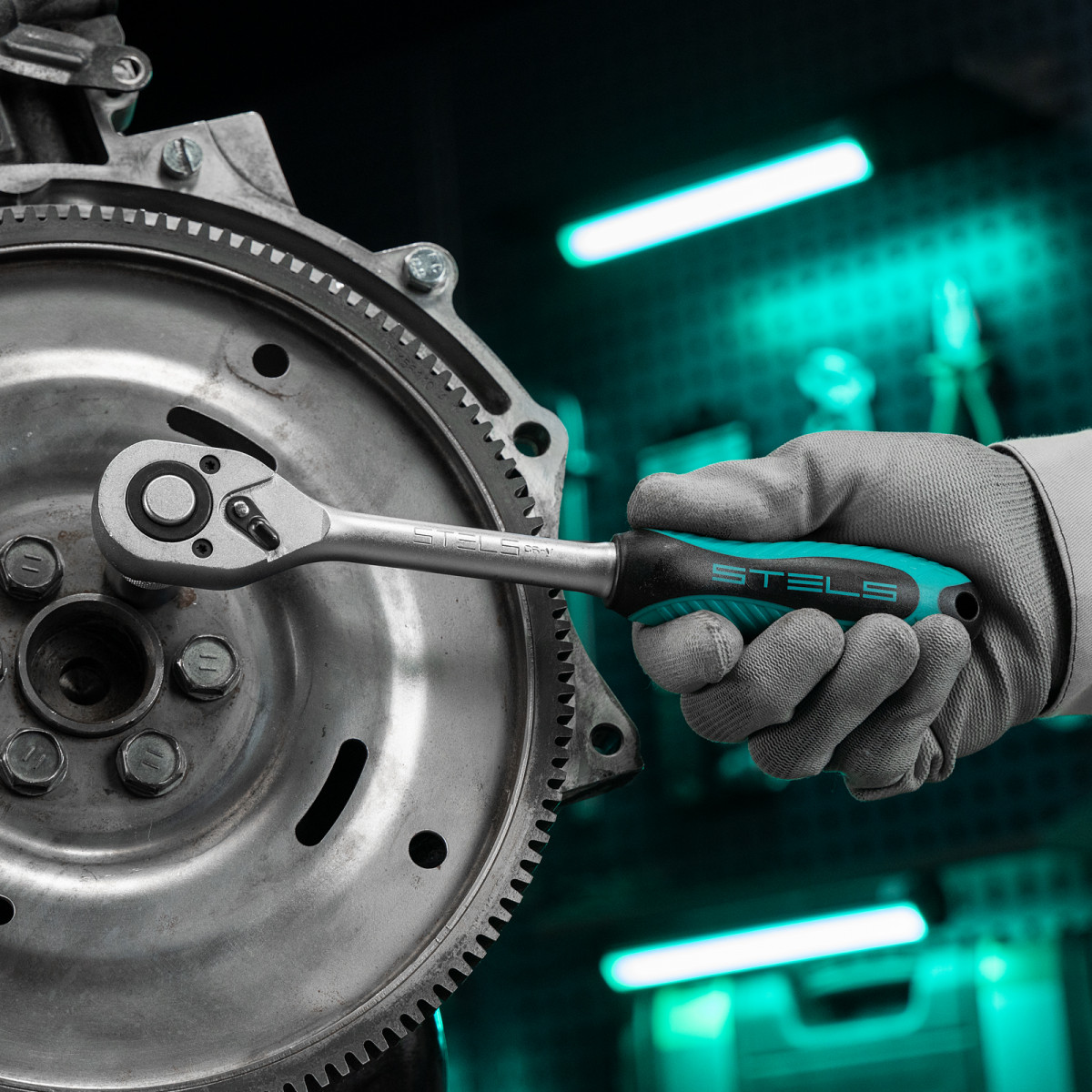 - Удобная работа в труднодоступных местах — трещотка с 72 зубьями позволяет вращать крепеж плавно и мягко.