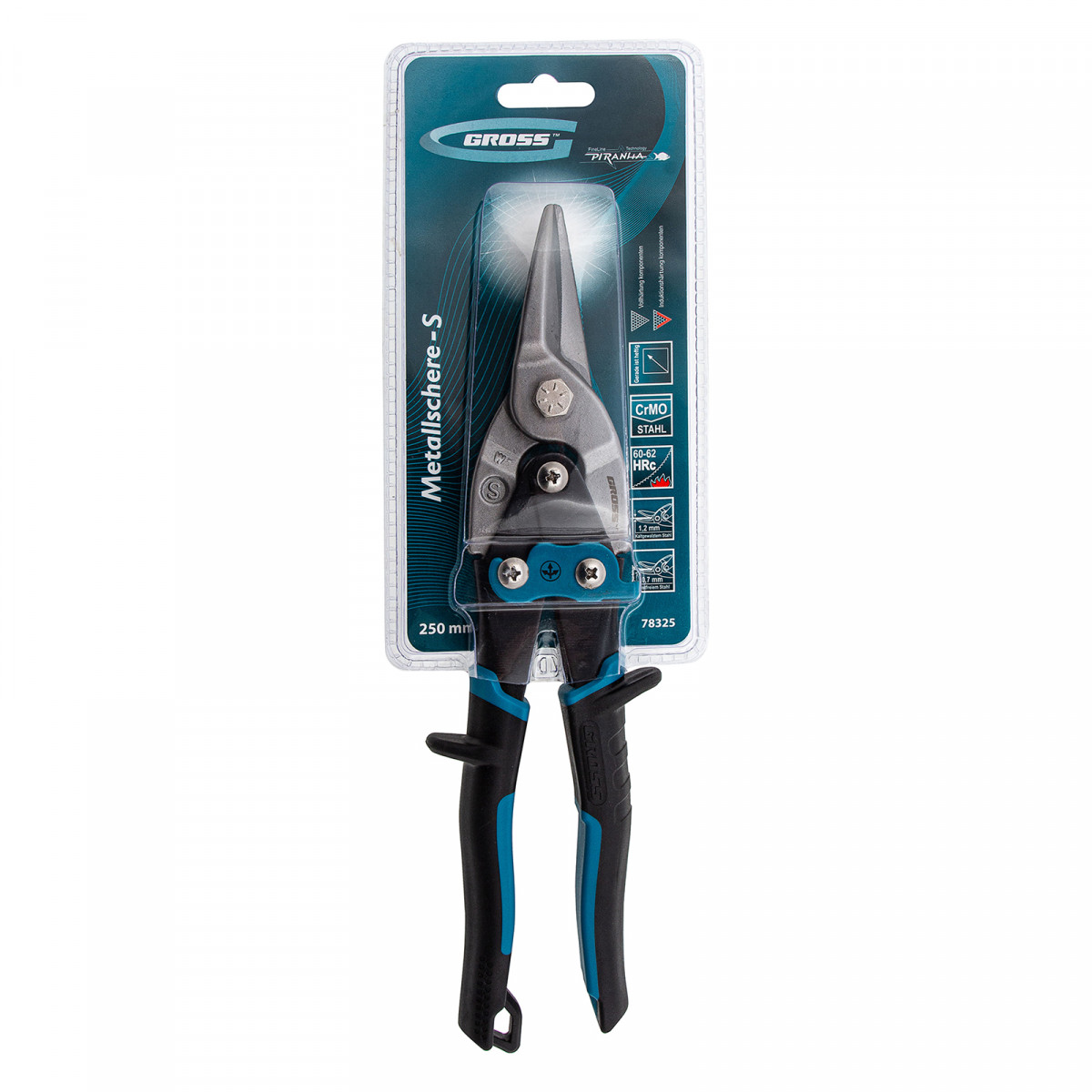 Ножницы по металлу "Piranha", 250 мм, прямой рез, сталь CrMo, двухкомпонентные рукоятки Gross