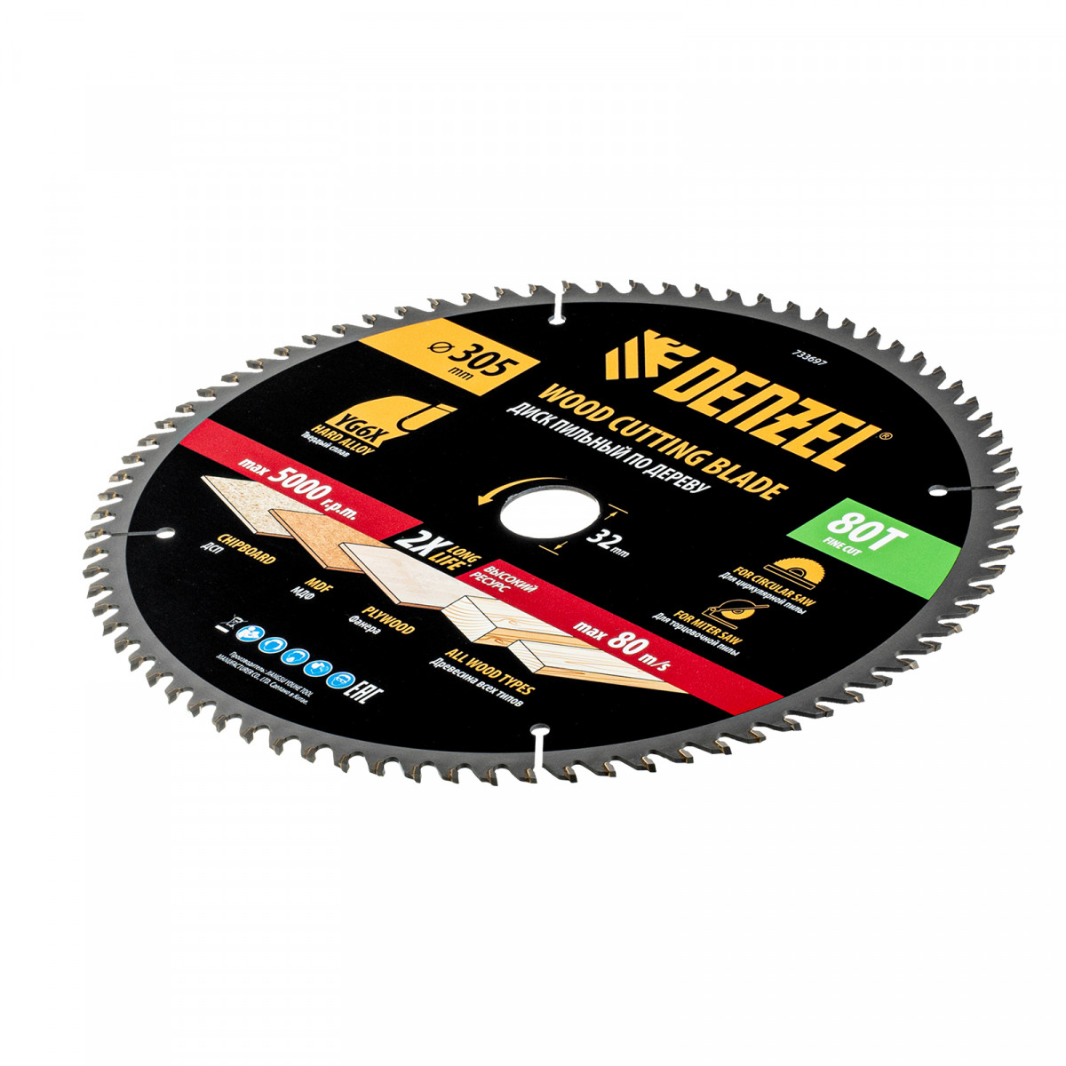 Пильный диск по дереву ф305 х 32 мм, 80 зубьев Denzel