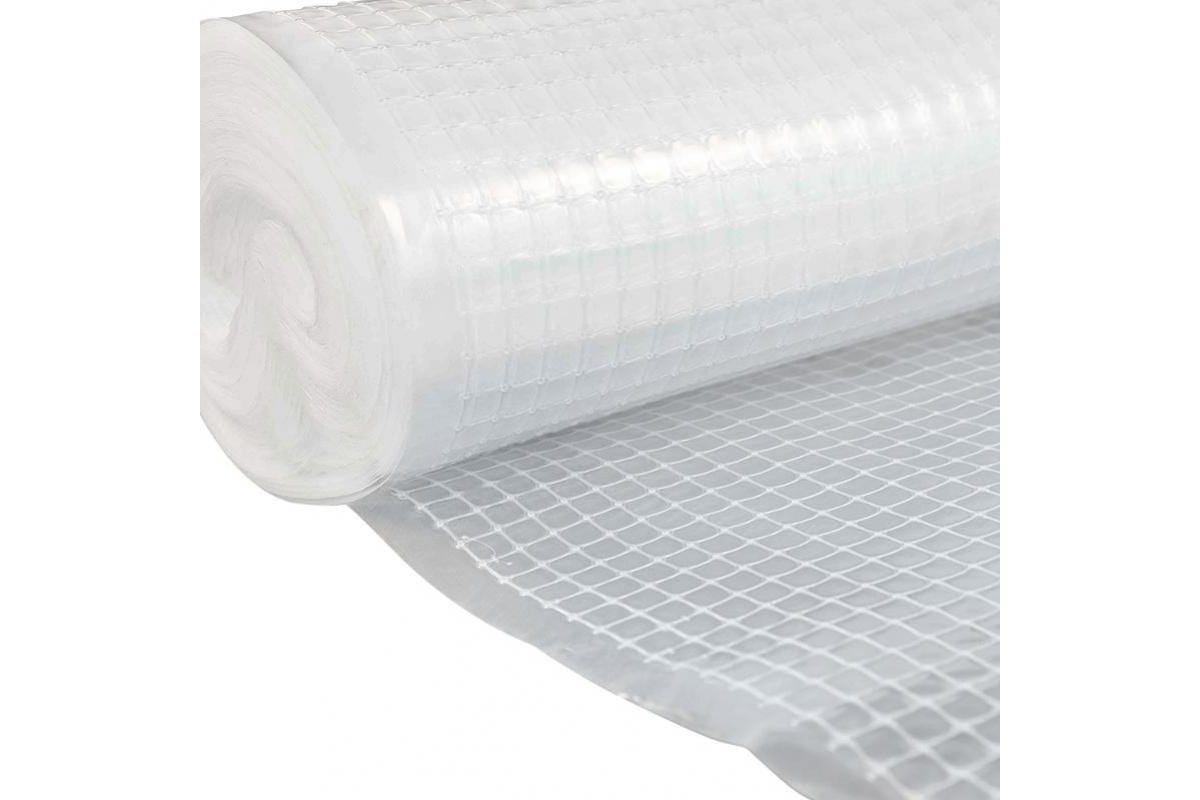 3-х слойная пленка - два внешних слоя пленки и внутренний слой - армирующей полипропиленовой нити. Благодаря дополнительным добавкам, пленка устойчива к УФ излучению. Пленка имеет размер армирующих ячеек - 7х7 мм, что обеспечивает прохождение света на уровне 80-90%. Преимущество армированной пленки - хорошая устойчивость к повреждению. Даже если происходит разрыв или прокол на одном месте, то полотно, благодаря армированию не разрывается дальше и есть возможность ремонта небольших повреждений.