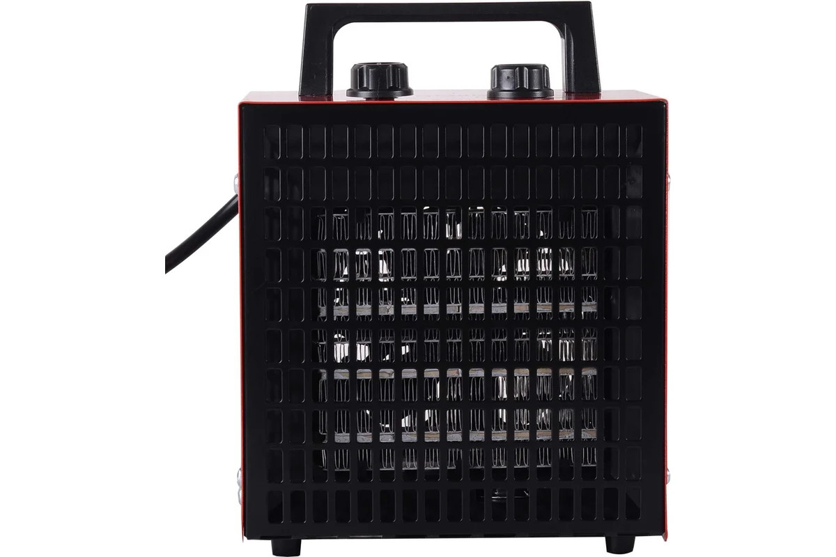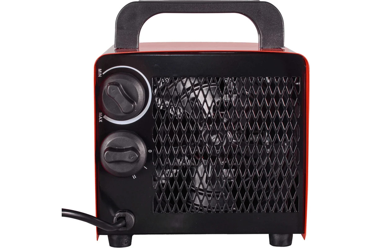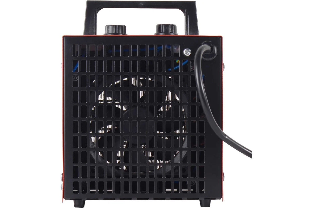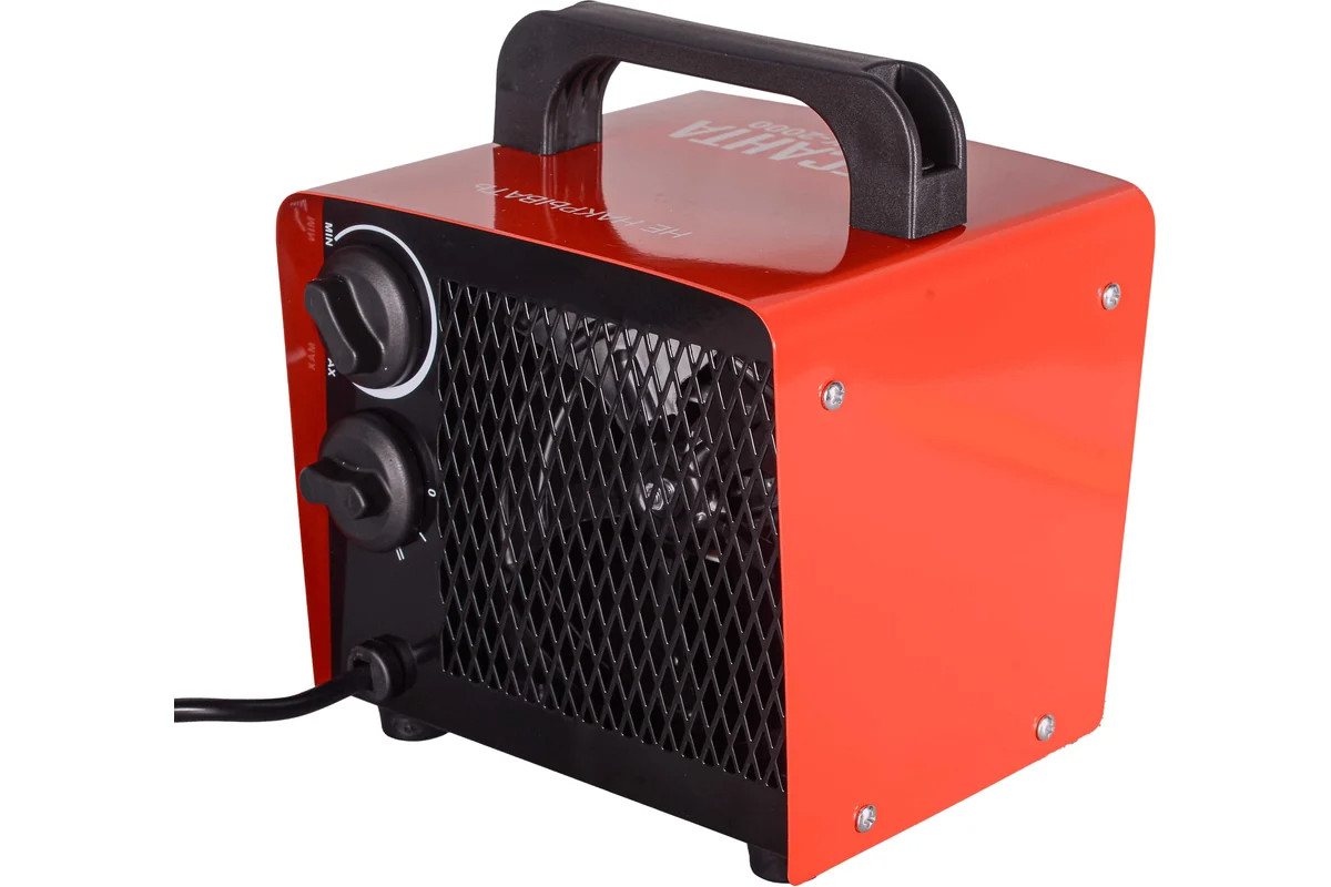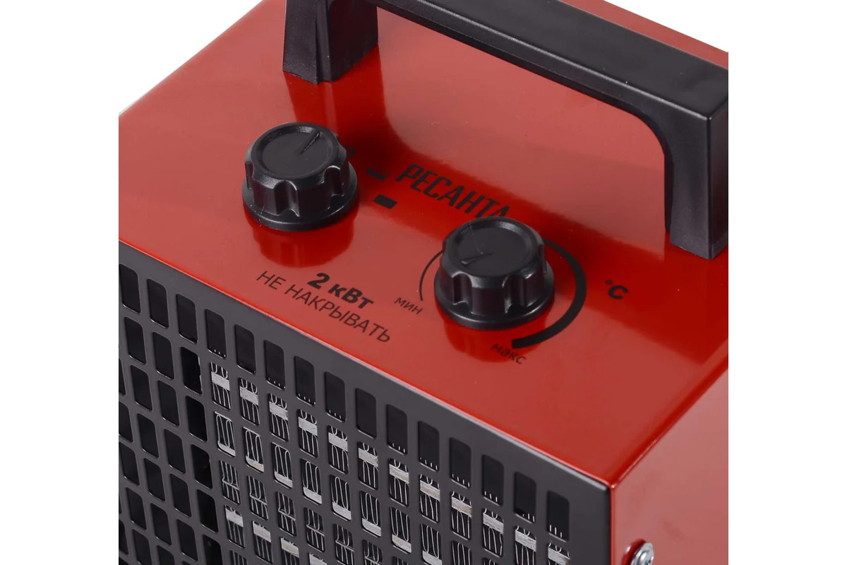 Корпус тепловой пушки выполнен из металла и оснащён широкой пластиковой ручкой. Модель Ресанта ТЭПК-2000 имеет квадратную форму, отличается компактными и небольшим весом – 1.73 кг. В основании агрегата имеются прорезиненные ножки, исключающие скольжение устройства на гладких напольных покрытиях. Нагревательный элемент надёжно защищён металлической сеткой, расположенной с фронтальной стороны. В тыльную часть вынесены 5-лопастной вентилятор и блок управления, включающий переключатель режимов работы и регулятор скорости вращения вентилятора. За счёт компактных габаритов электрическая пушка быстро выходит на максимальный режим нагрева и обладает хорошей теплоотдачей. В приборе установлена система термозащиты, которая отключает его в случае перегрева. Работает агрегат от бытовой сети 220 Вт, 50 Гц.