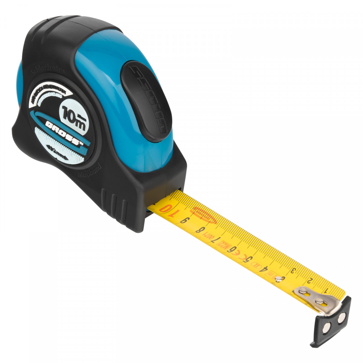 Рулетка "Schlagfest",10 м x 25 мм,магнитный обрезиненный зацеп,двусторонняя шкала,автоматическая фиксация Gross