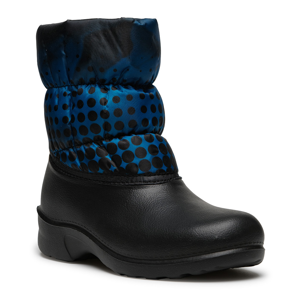 Сапоги зимние женские 327, горошки на бирюзовом, черный Дюна-Аст