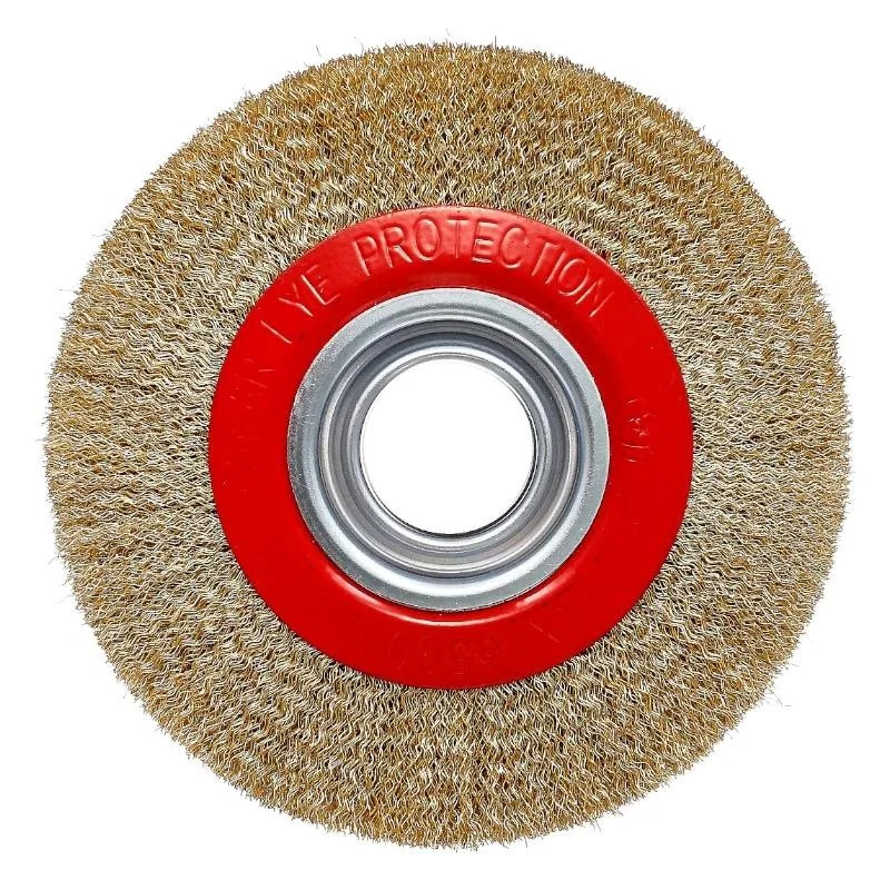 Изготовлена из мягкой латунированной стали, отличается витой проволокой до 0,3 мм, которая расположена по окружности. Устанавливается данная оснастка на УШМ (с регулировкой оборотов), электроточила.
