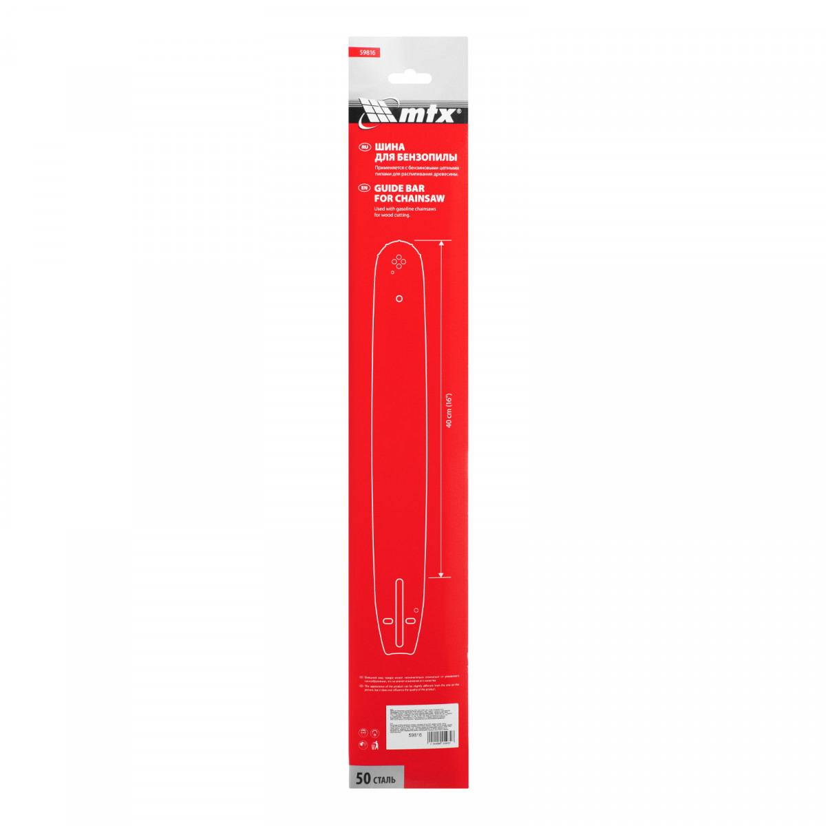 Шина для бензопилы, длина 40 см (16"), шаг 0,325", паз 1,5 мм, 64 звена// MTX