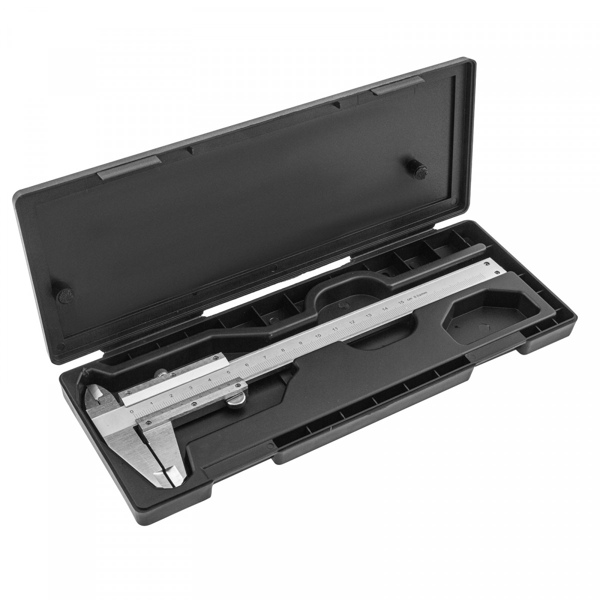 - Удобное хранение и транспортировка — штангенциркуль упакован в прочный пластиковый кейс.