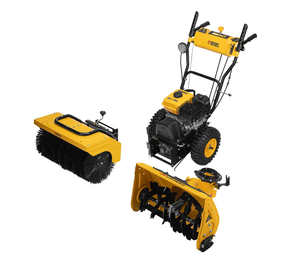 - 2 в 1 — снегоуборочная насадка используется для уборки сугробов и слежавшегося снега зимой, насадка-щетка может использоваться круглый год для уборки листвы и мусора, очистки тротуара, асфальта и плитки от свежевыпавшего снега до основания