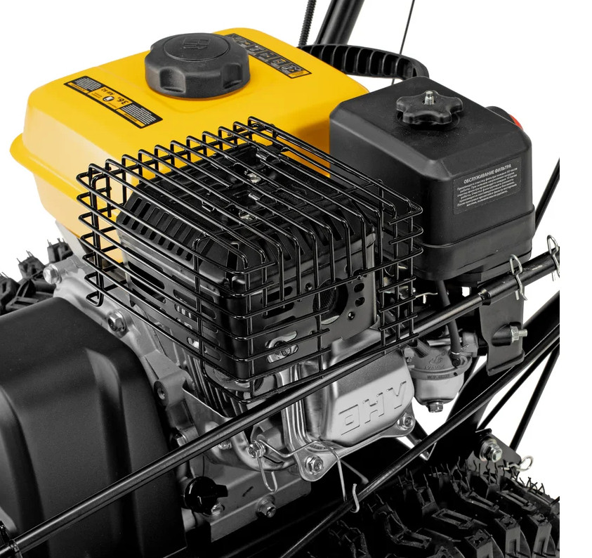 Ширина обработки щеткой составляет 600 мм, ширина шнека — 560 мм при высоте захвата 430 мм, поэтому машина оптимальна для применения на дачном участке.