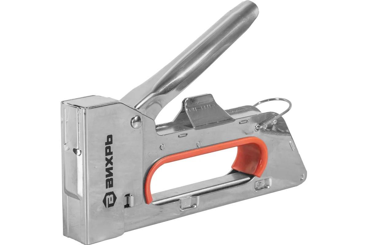 Мебельный степлер Вихрь применяется для сборки мягкой мебели, шкафов и других отделочных работах. Используются скобы 53 типа, длина от 4 до 8 мм. Имеется плавная регулировка силы удара.Преимущества степлера Противоскользящая резиновая вставка - Для предотвращения скольжения во время работыФиксатор безопасного положения рукоятки - предотвращает случайное срабатывание и обеспечивает безопасность использованияБыстрая и удобная загрузка скоб снизуПрочная и надежная металлическая конструкция обеспечивает длительный срок службы и высокую износостойкость