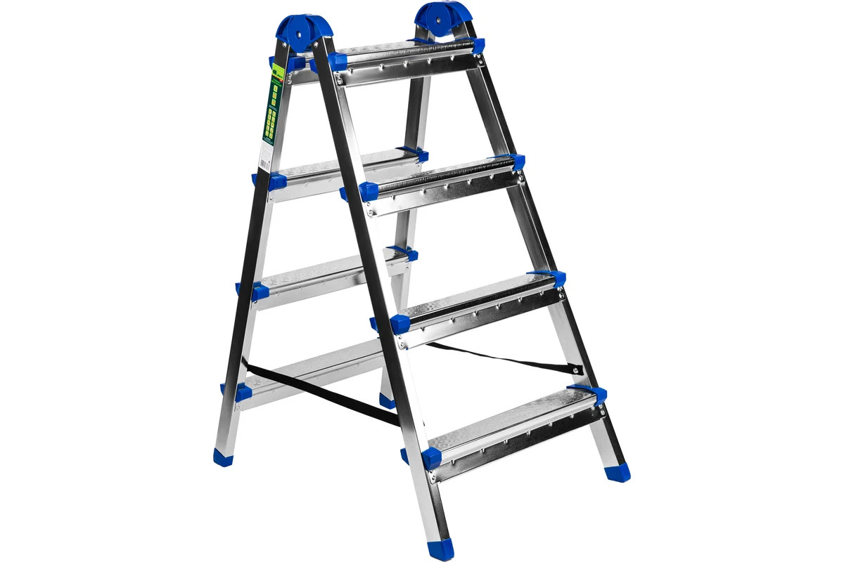 Стремянка двухсторонняя 4 ст., сталь профиль, стальные ступени, Россия// Сибртех