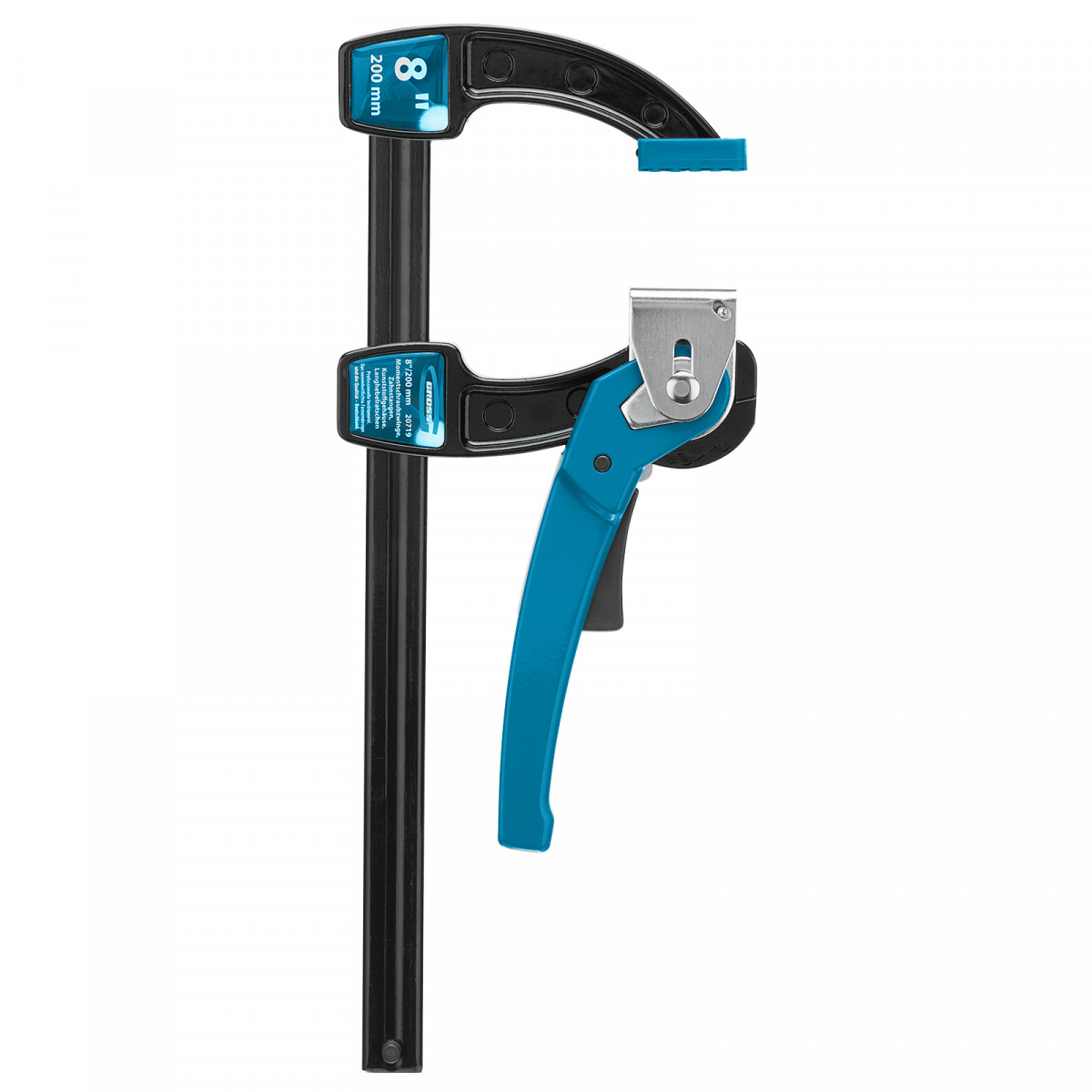 Струбцина реечная быстрозажимная 8, металлический корпус, рычажный храповой механизм, 200 мм Gross