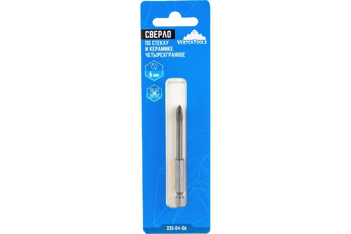 Сверло по керамике и стеклу 4 грани vertextools 335-04-06 имеет высокую твердость и прочность.