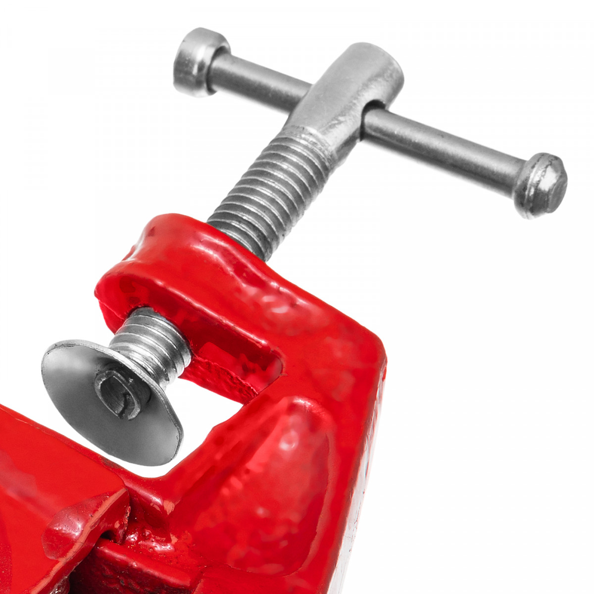 - Простое использование — винтовой зажимной механизм позволяет легко устанавливать и снимать тиски с рабочего стола.