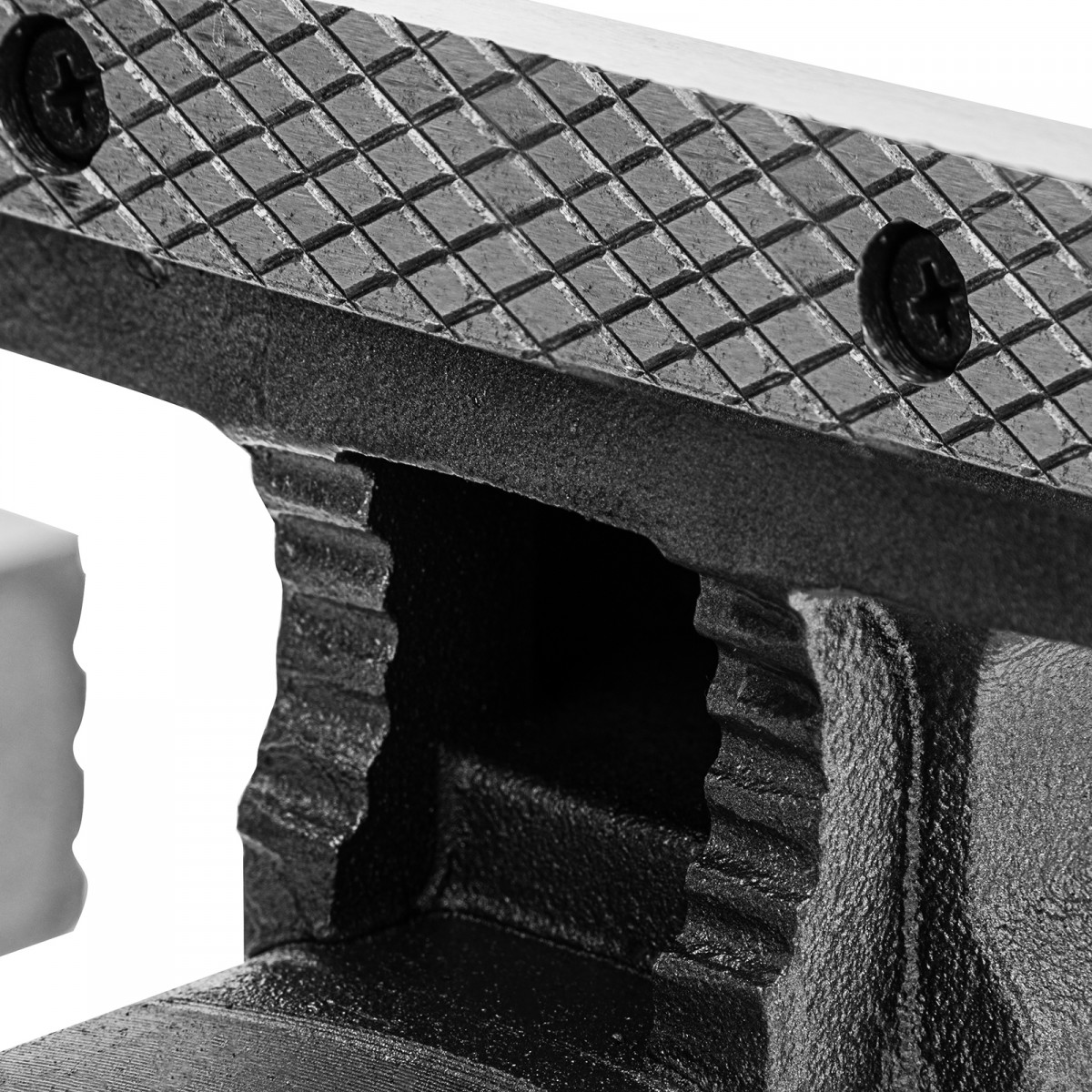 • Функциональность — тиски поворачиваются на 360°, что позволяет менять и выбирать позицию инструмента для удобной работы с заготовкой.