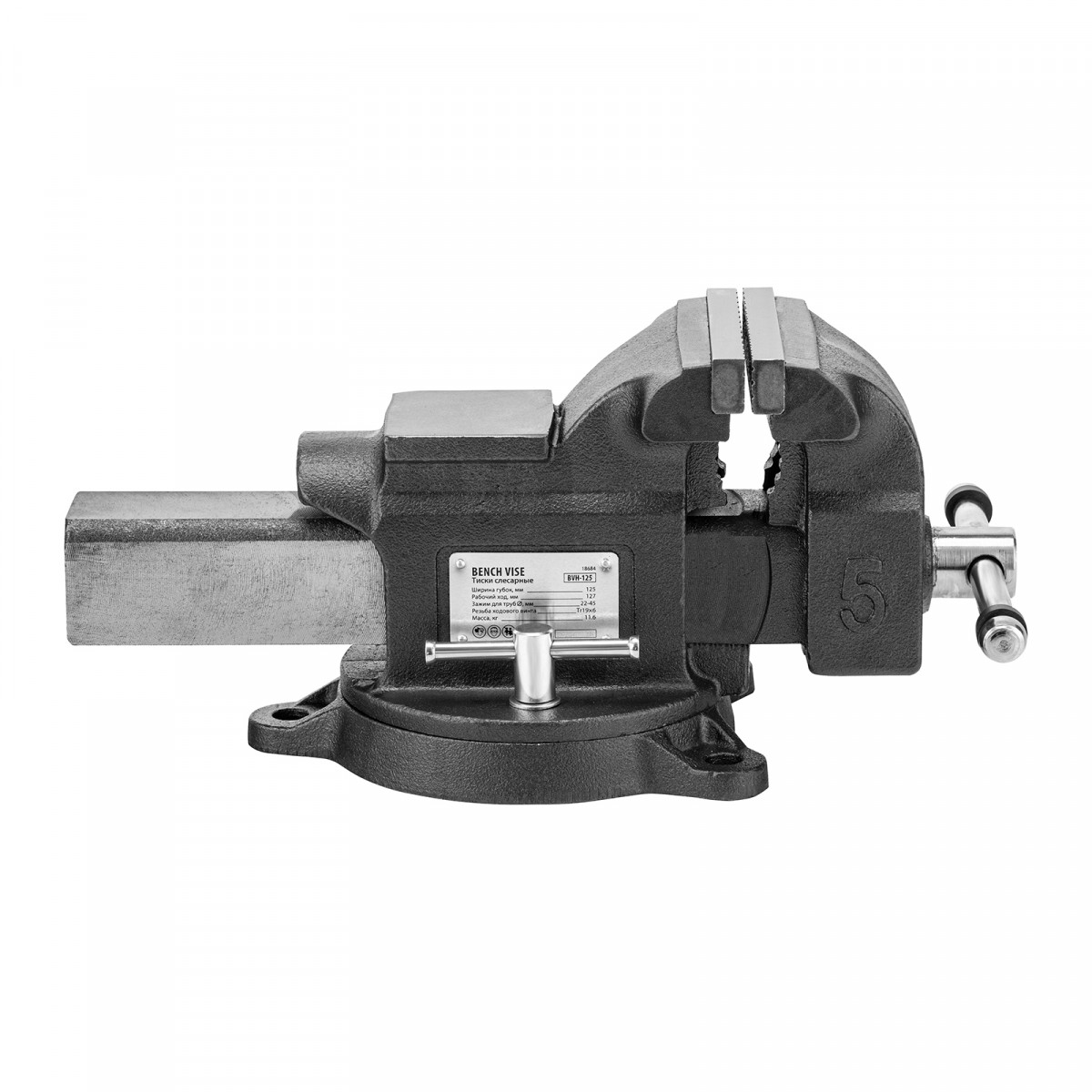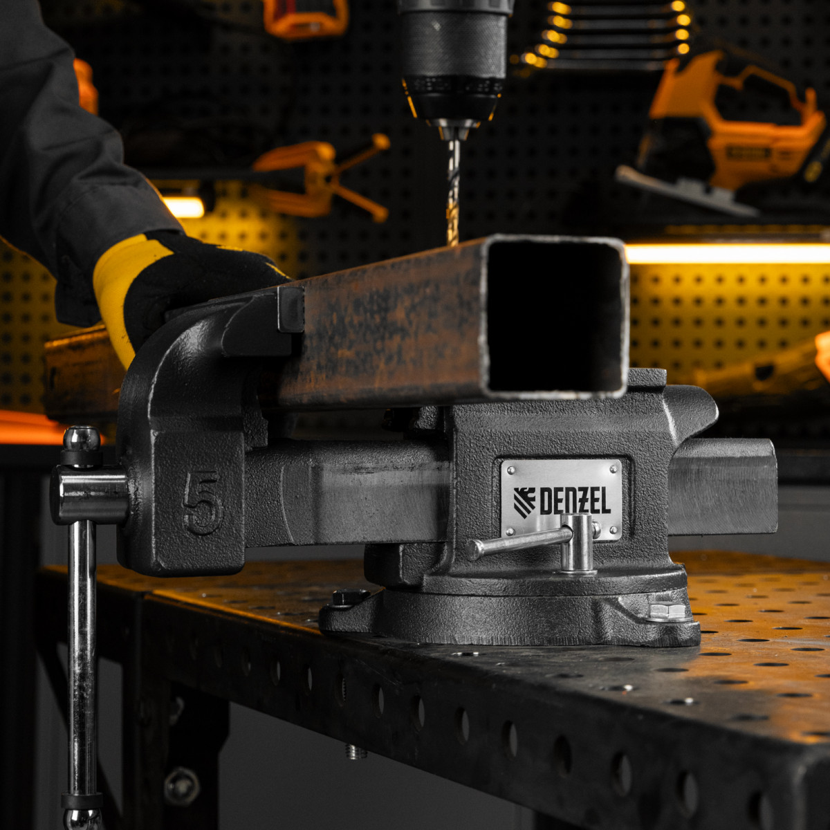 Тиски слесарные BVH-125, 125 мм, поворотные, стальная направляющая, с наковальней //Denzel