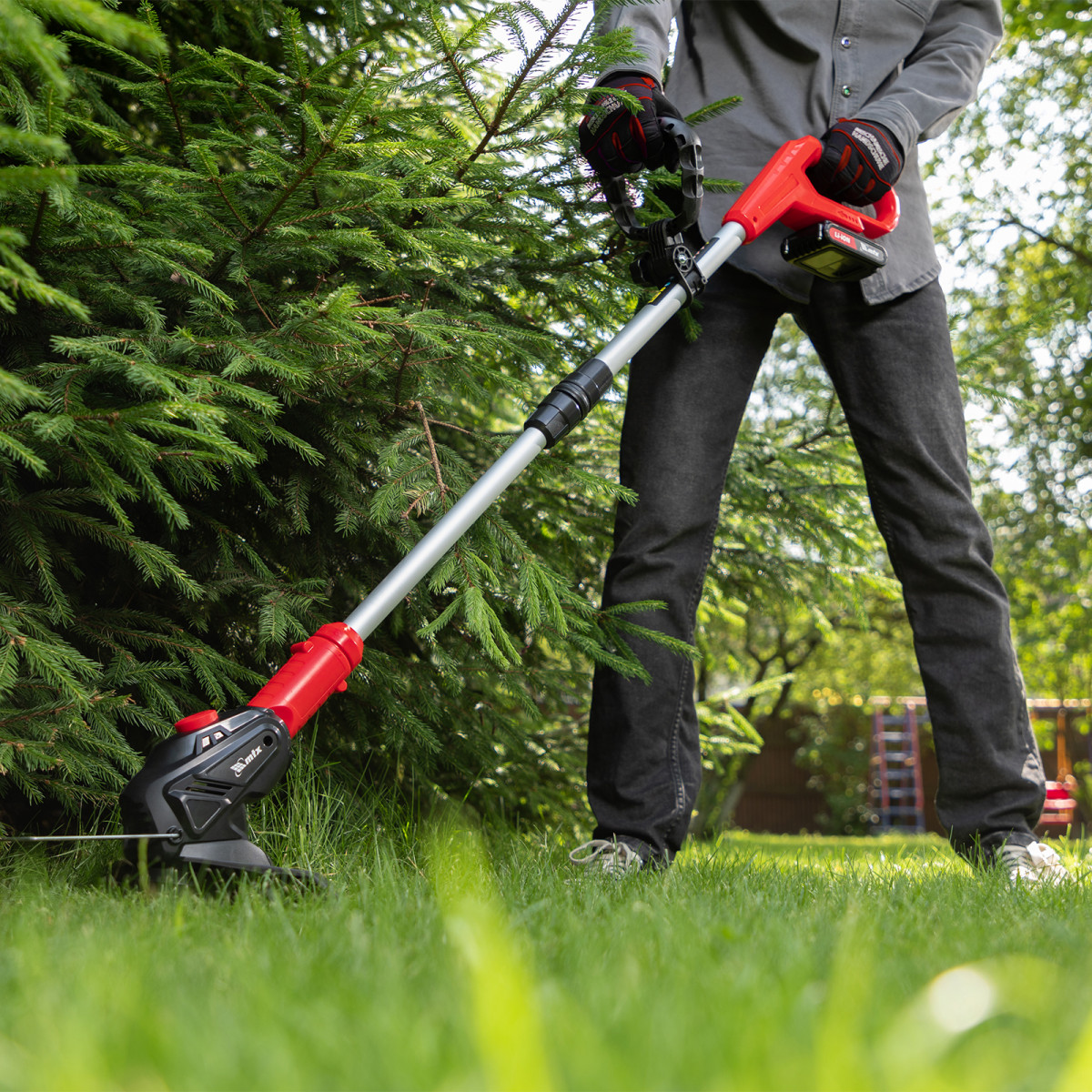 • Комфортная эксплуатация — дополнительная рукоятка позволяет легко удерживать и направлять триммер.