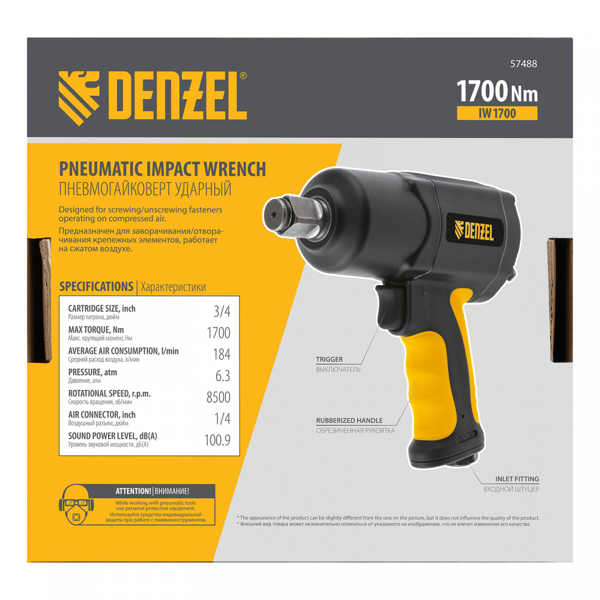 Ударный пневмогайковерт IW1700, 3/4", 8500 об/мин, 1700 Нм Denzel