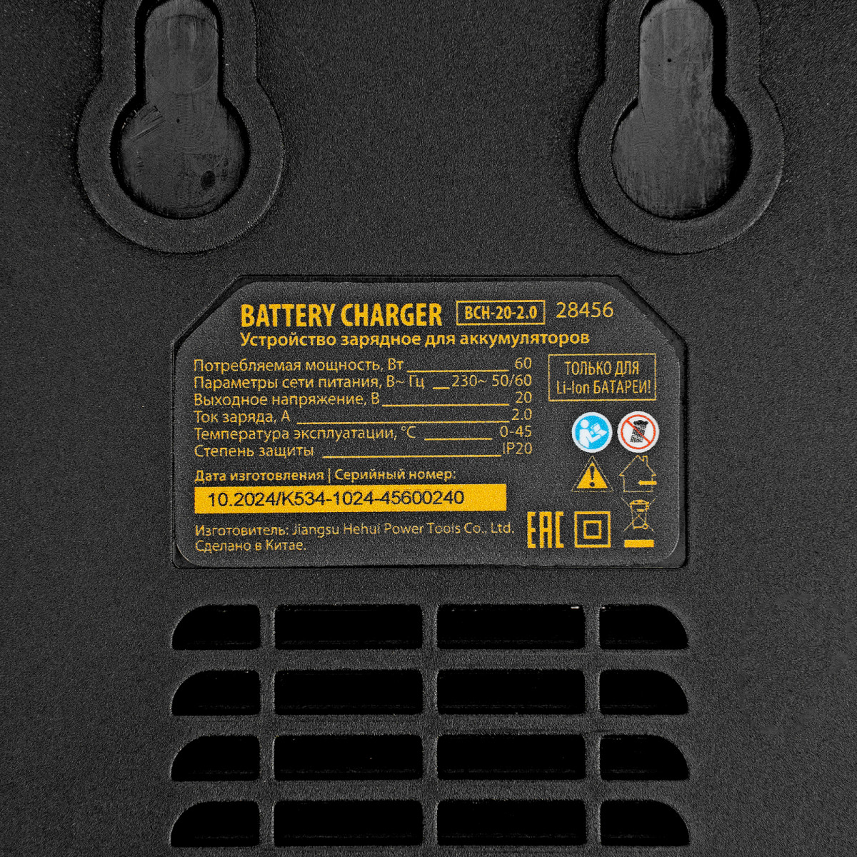 Зарядное устройство Denzel BCH-20-2.0 28456 поддерживает ток заряда 2,0 A и предназначено для восстановления работоспособности аккумуляторов Denzel Li-Ion 20 В (артикулы 28442, 28444 и 28446). Обеспечивает быструю и полную зарядку, что позволяет избежать длительных перерывов в работе с аккумуляторным инструментом.